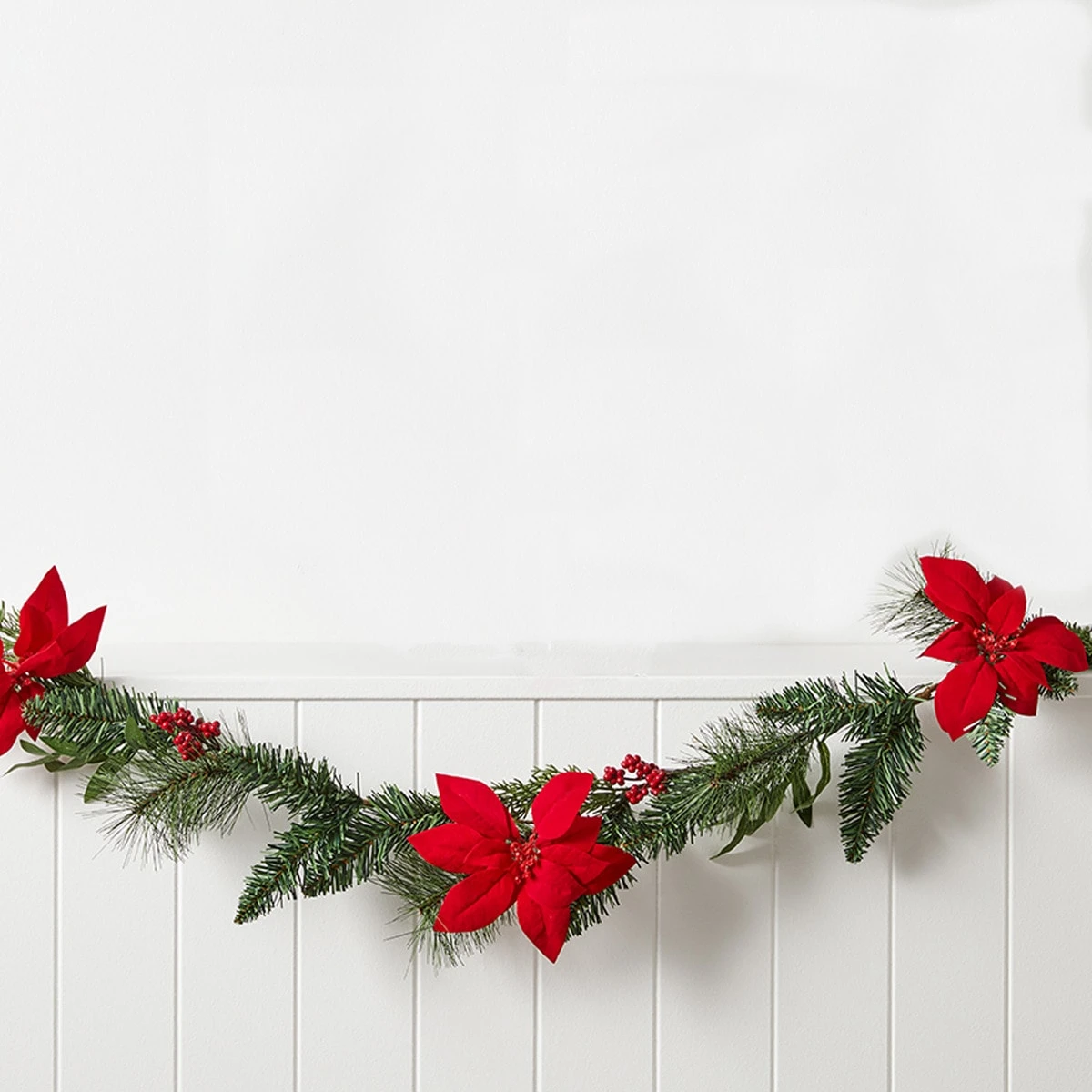 Lend a warm and cheerful flair to your Christmas decor with this Christmas garland poinsettia.