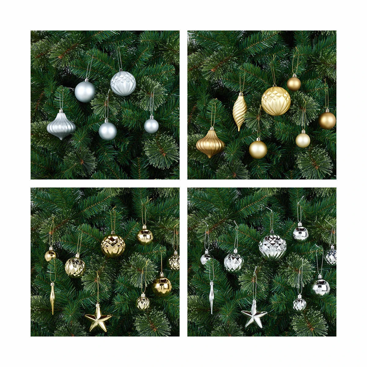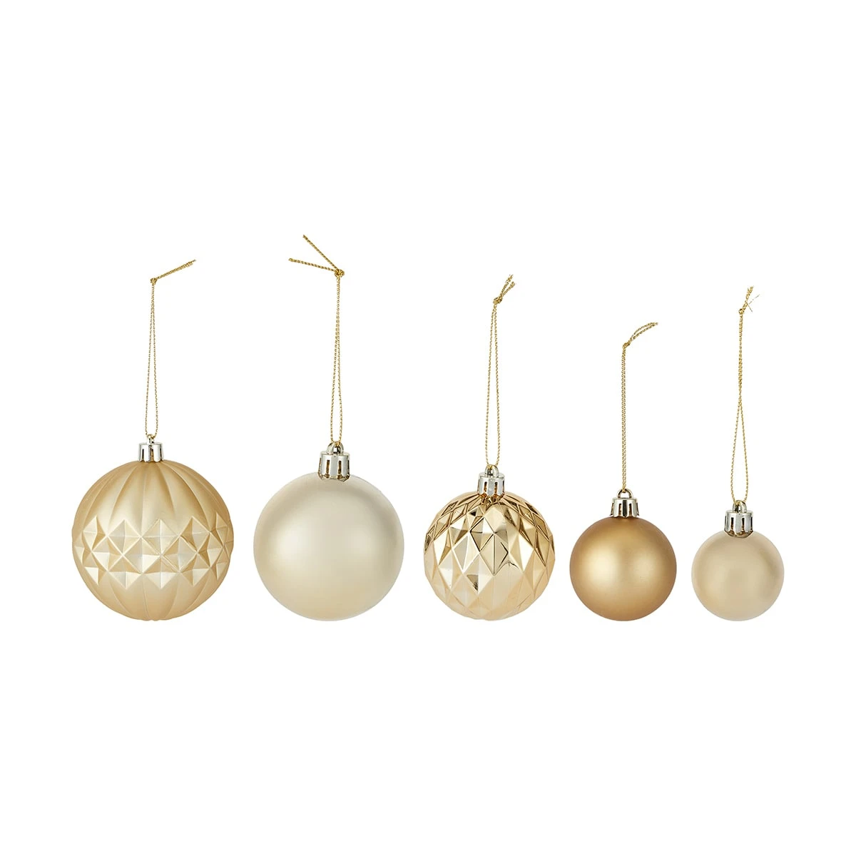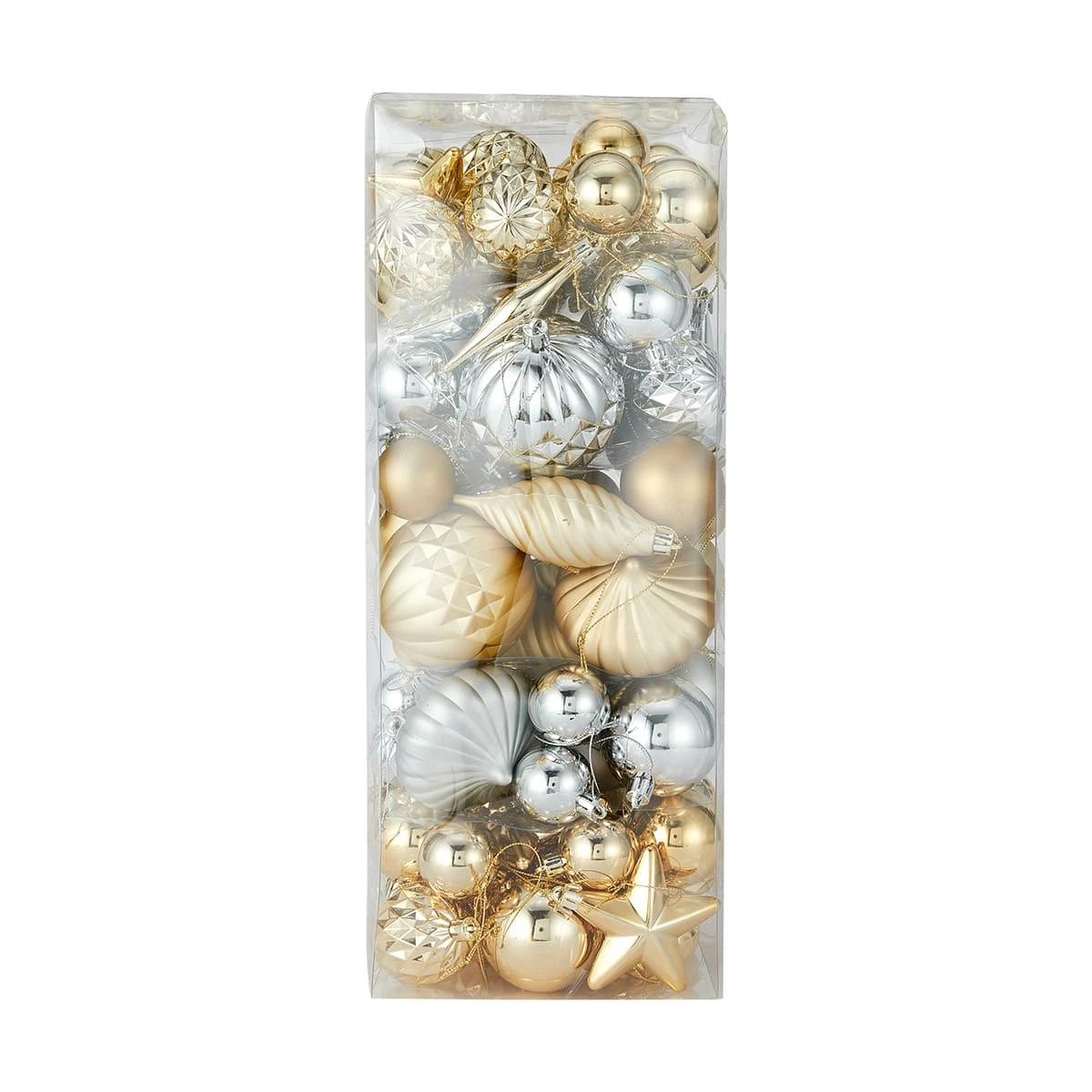 - Includes 32 x 4cm ball, 31 x 5cm ball, 7 x 6cm ball, 2 x 7cm ball, 2 x 8cm ball, 3 x ribbed droplet, 10 x star design, 6 x wide droplet and 7 x long droplet