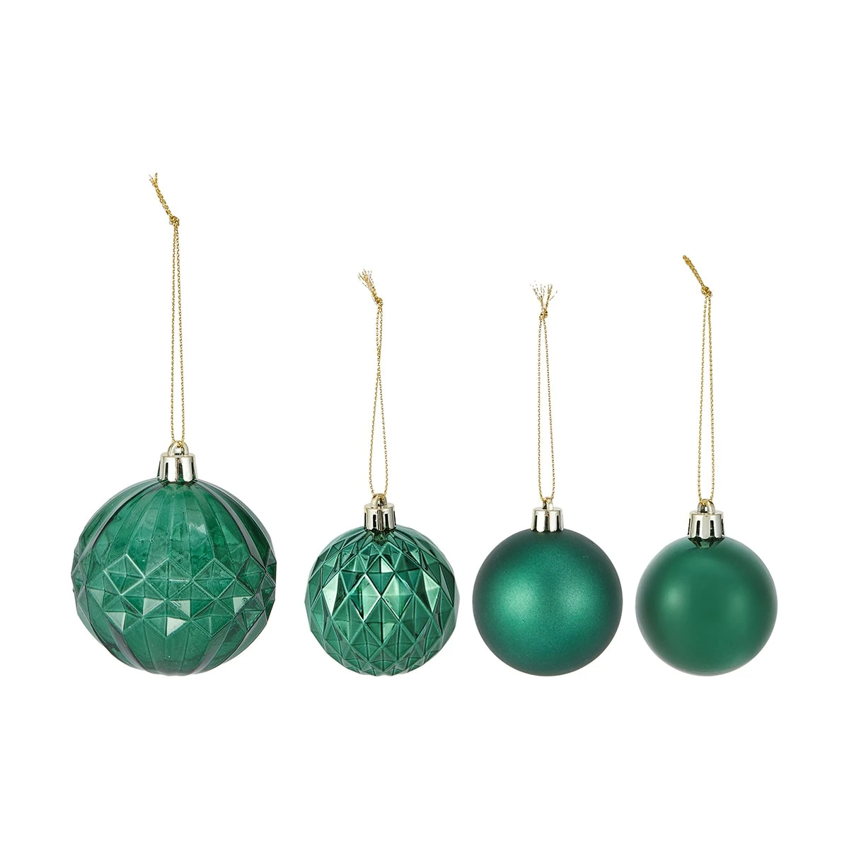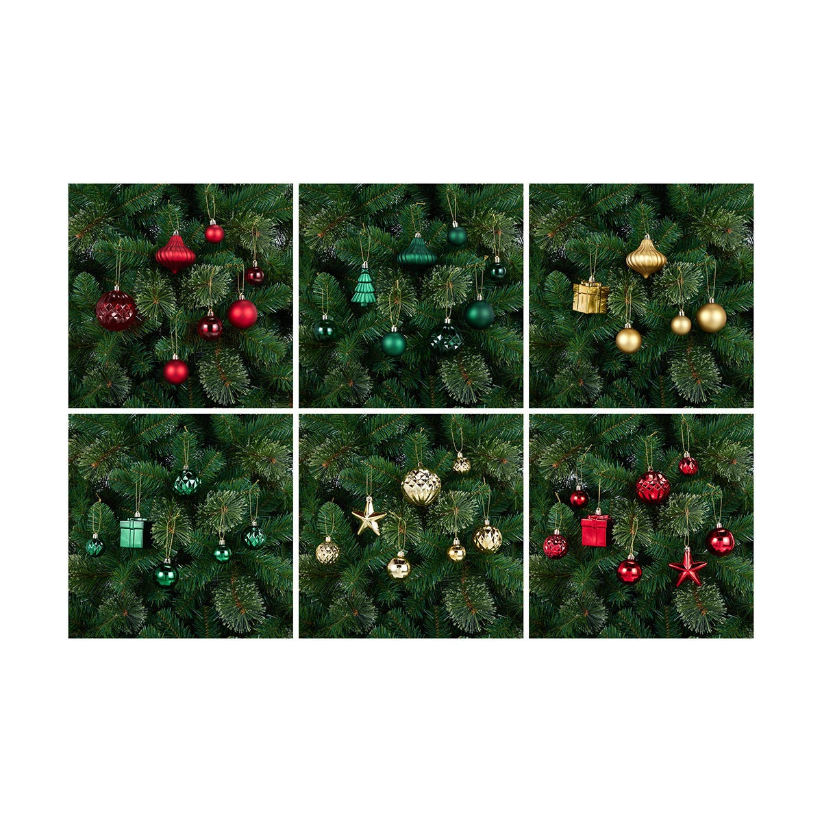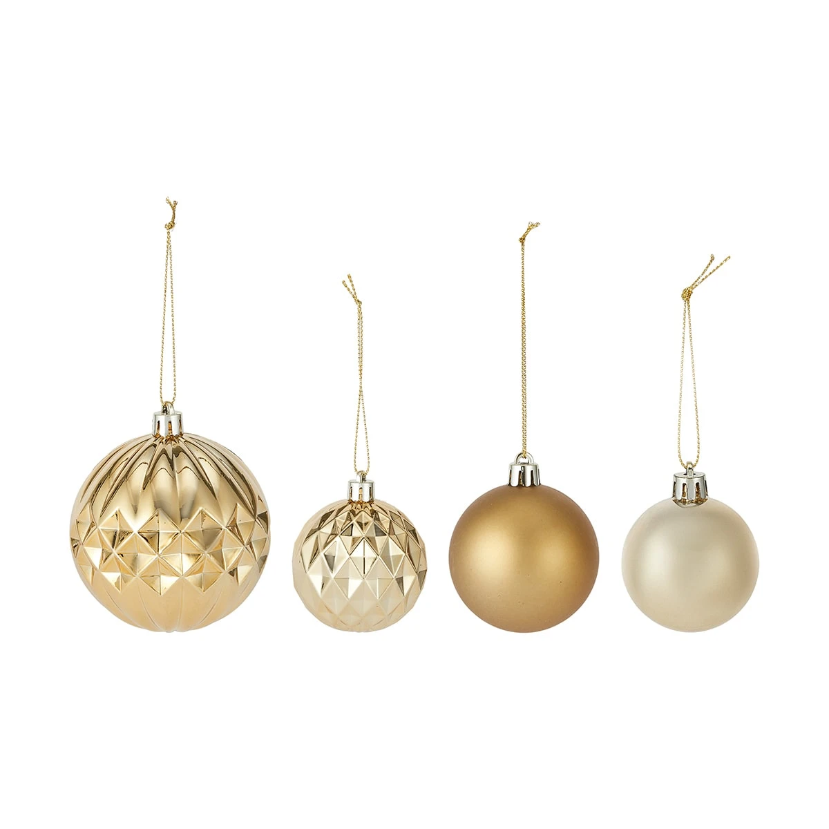 - Includes 32 x 4cm ball, 31 x 5cm ball, 7 x 6cm ball, 2 x 7cm ball, 2 x 8cm ball, 3 x tree design, 10 x star design, 6 x wide droplet design and 7 x present