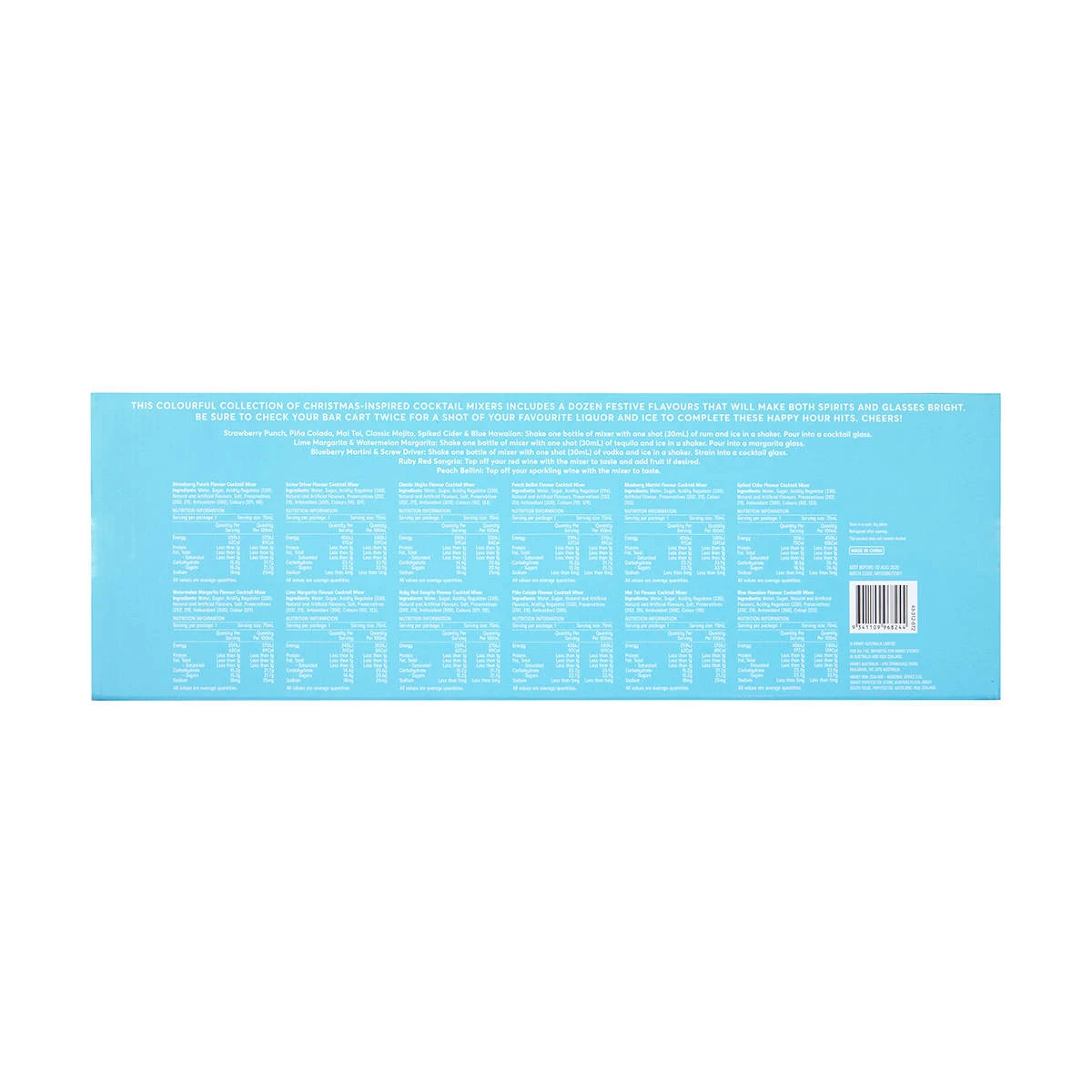 This colourful collection of Christmas-inspired cocktail mixers includes a dozen festive flavours that will make both spirits and glasses bright. Be sure to check your bar cart twice for a shot of your favourite liquor and ice to complete these happy hour hits. Cheers!