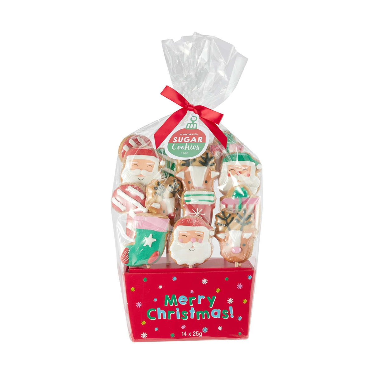 - Ingredients: Sugar Cookies 80% {Wheat Flour, Palm Oil [Contains Antioxidant (321)], Sugar, Water, Artificial Flavours, Salt, Raising Agents (500, 450, 500ii, 341, 170), Corn Starch, Acidity Regulator (330)}, Decorated Icing 20% [Sugar, Water, Gelatin (Pork), Colours (129, 122, 102, 110, 133)]
