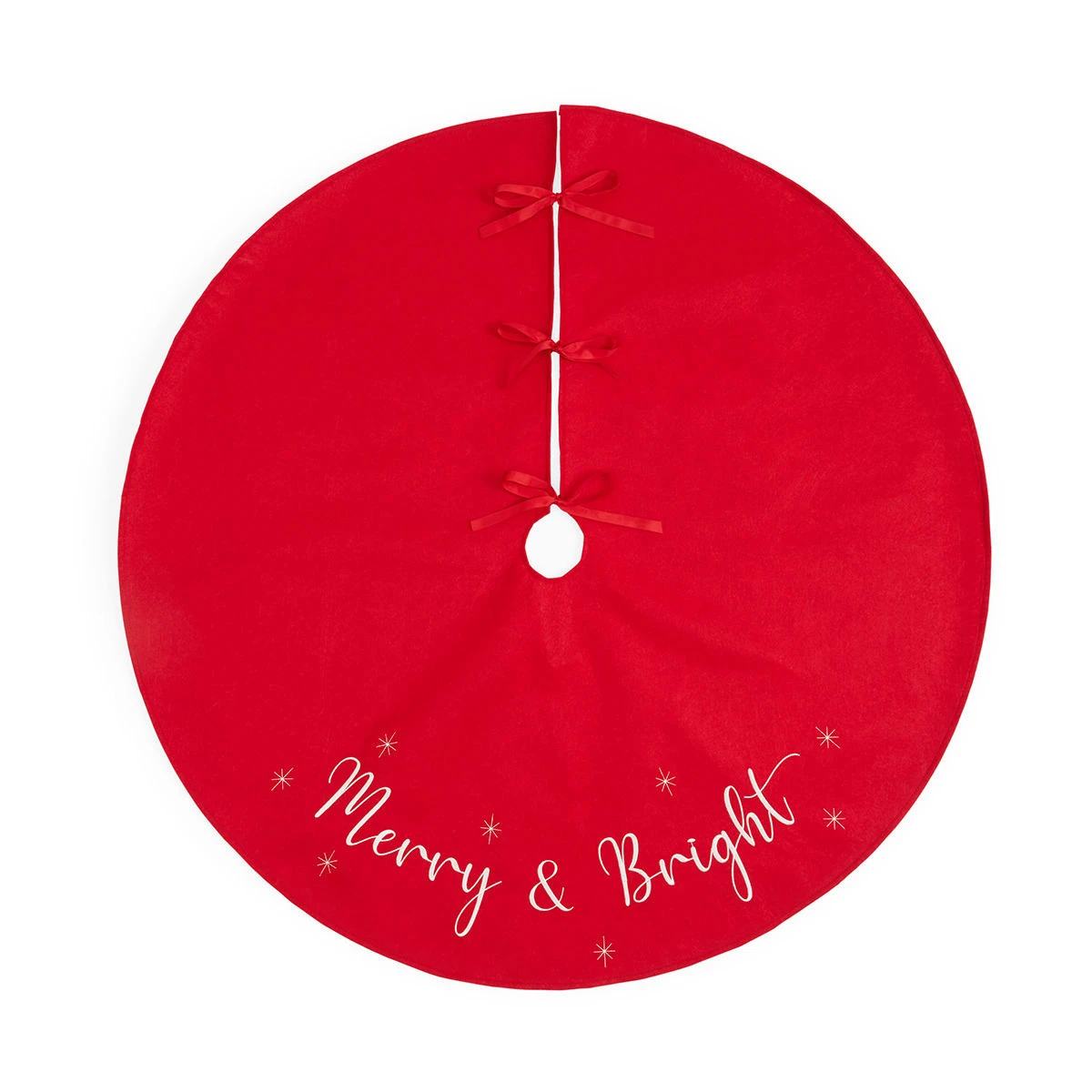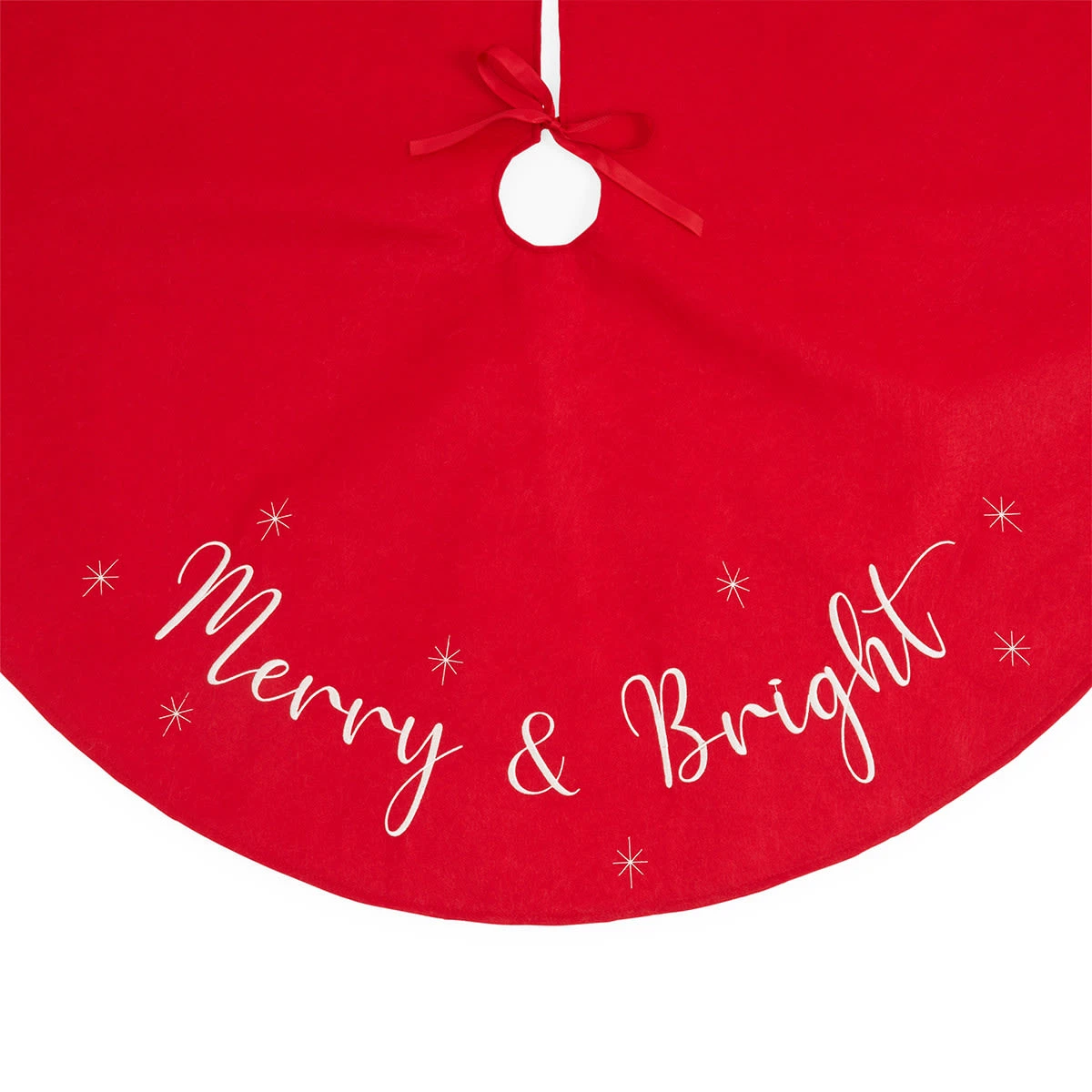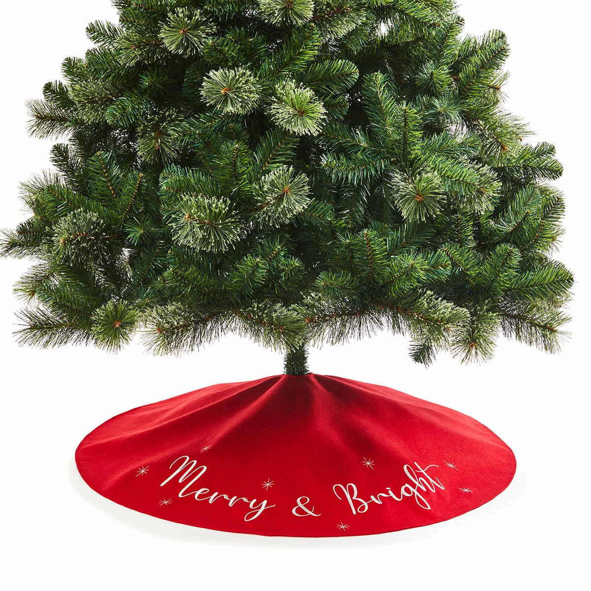 - Spells out ‘Merry & Bright’ on the tree skirt