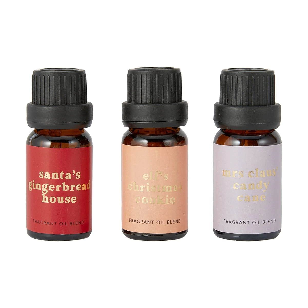 - Includes 1 Elf’s Christmas cookie oil blend, 1 x Santa’s gingerbread house oil blend and 1 x Mrs Claus’ candy cane oil blend