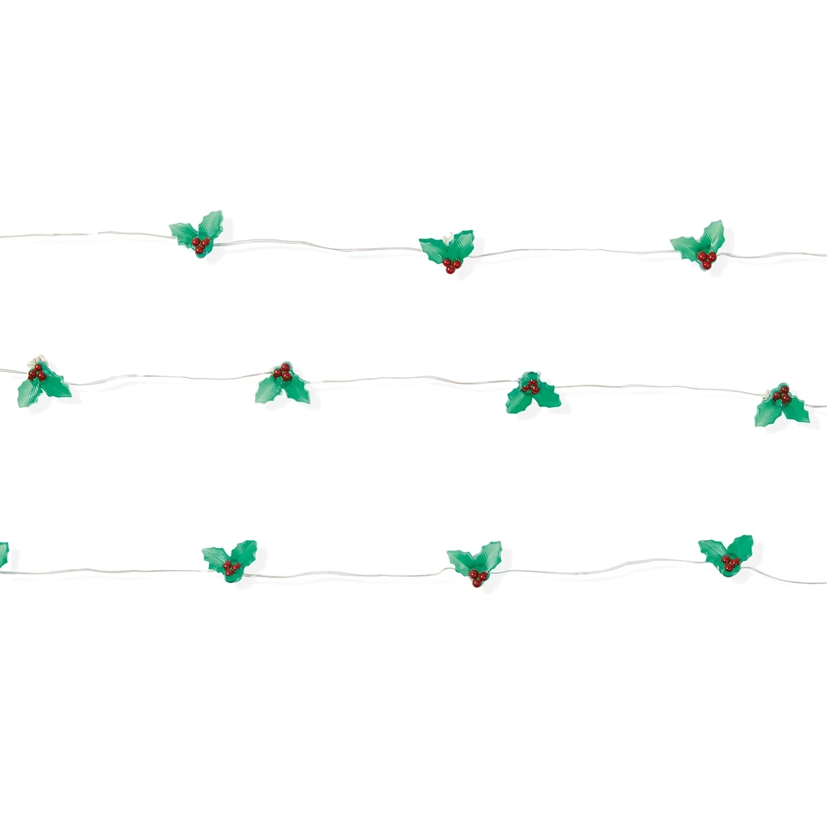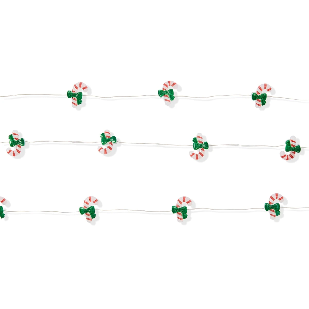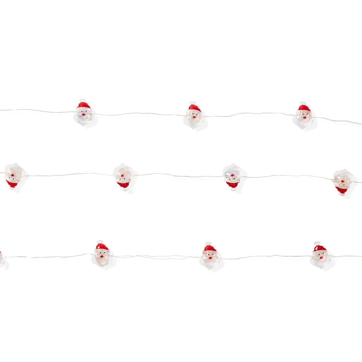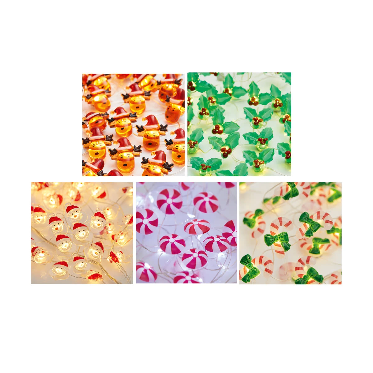 - Holly, candy cane, Santa and reindeer lights: 30 warm, white non-replaceable LED bulbs