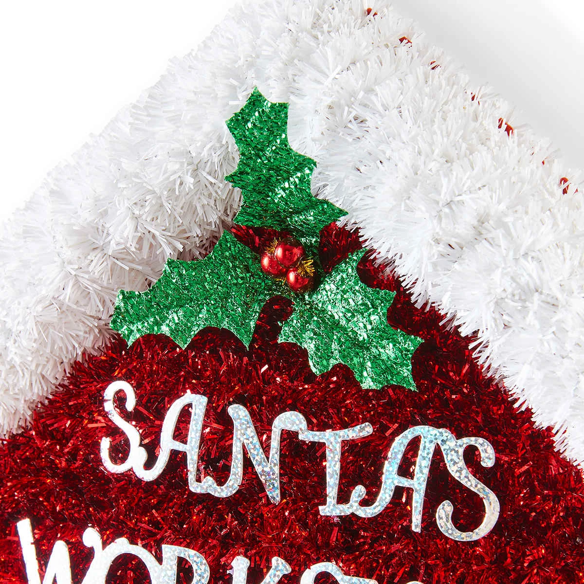 Give your Christmas tree a festive touch with this tinsel Santa’s workshop hanging decoration.