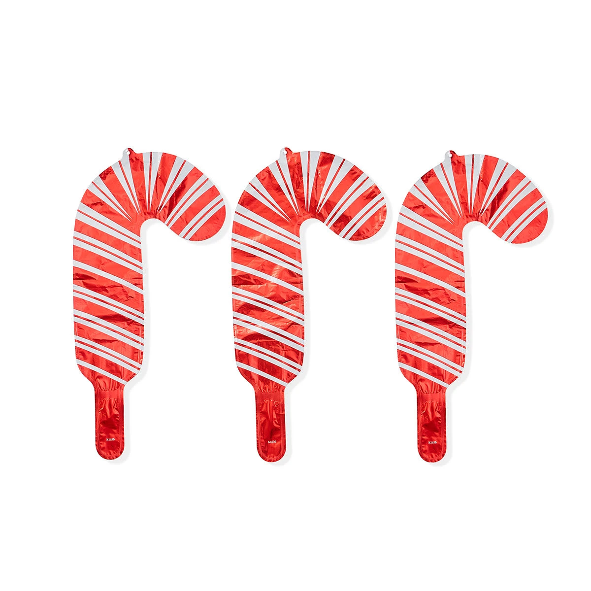 - Includes 3 x candy cane foil balloons, 30 x latex balloons, 5 x latex balloons with pre-filled confetti, 5 x latex balloons, 1 x snowflake foil garland and 1 x plastic tape