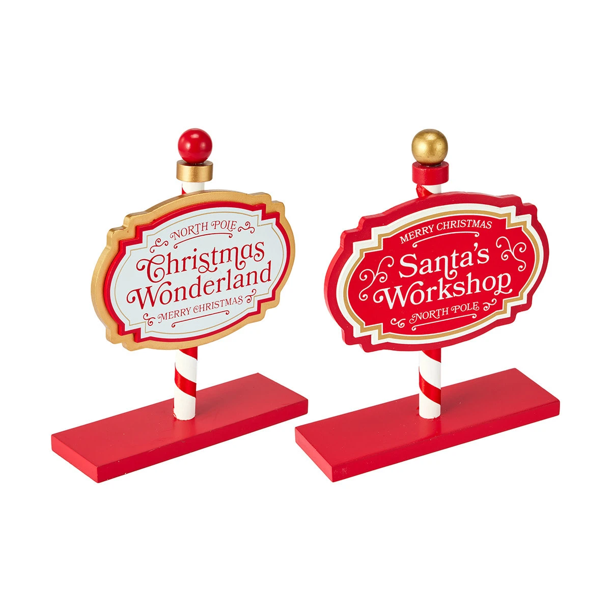 - ‘North Pole Christmas Wonderland Merry Christmas’ or ‘Merry Christmas Santa’s Workshop North Pole’ text on sign post variants