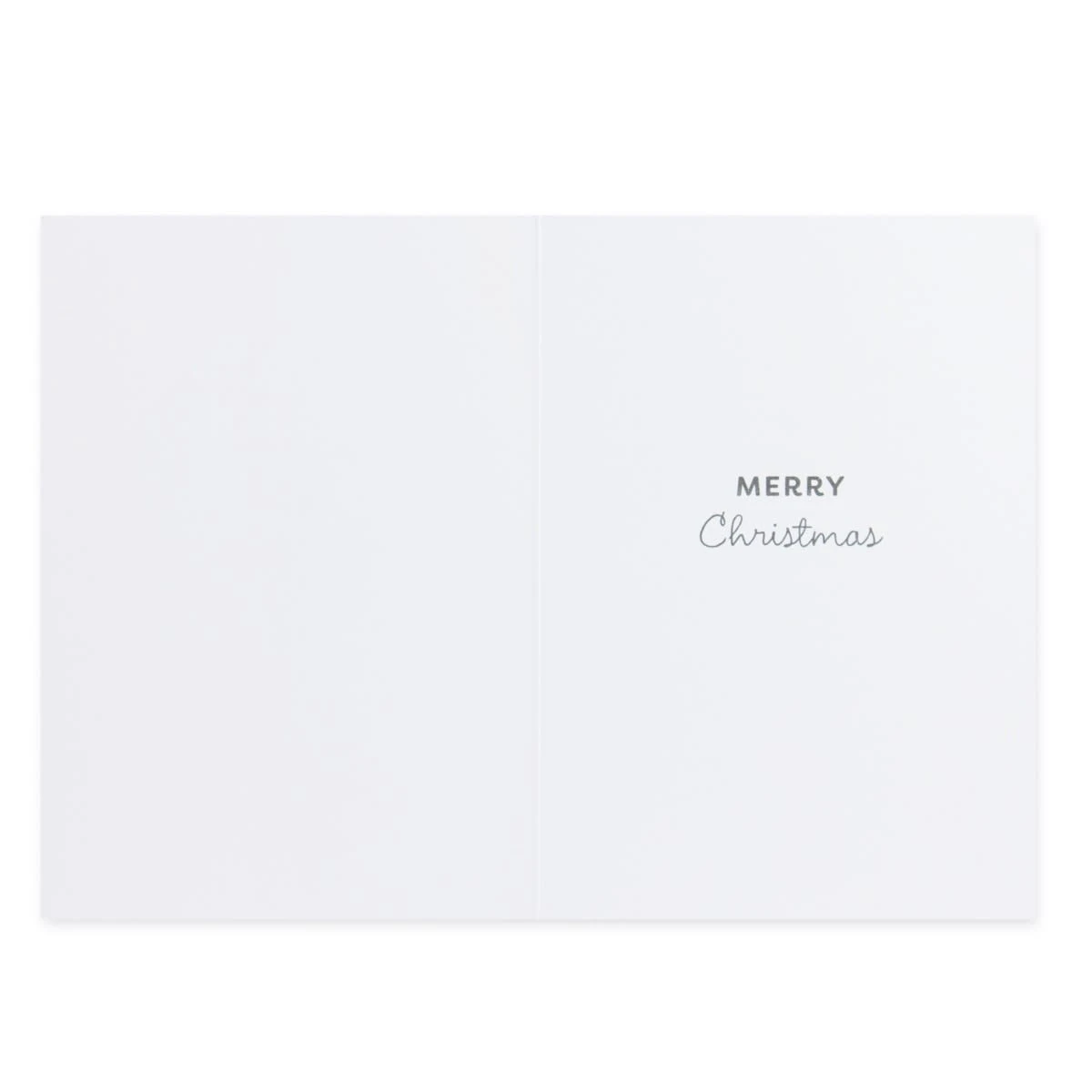 - The front of card one features gold foil embossed detailing with the message ‘SEASONS Greetings’ and the inside of the card features the message ‘MERRY Christmas’