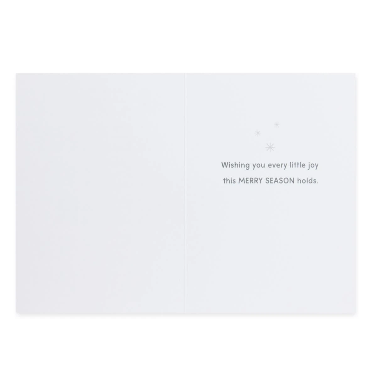 - The inside of the cards feature illustrations of stars alongside the message ‘Wishing you every little joy this MERRY SEASON holds.’