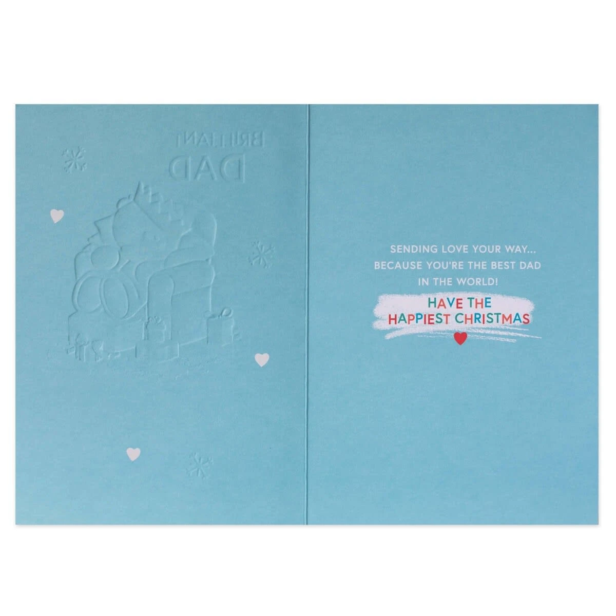 - The inside of the card features an illustration of a love heart alongside the message ‘SENDING LOVE YOUR WAY… BECAUSE YOU’RE THE BEST DAD IN THE WORLD! HAVE THE HAPPIEST CHRISTMAS’