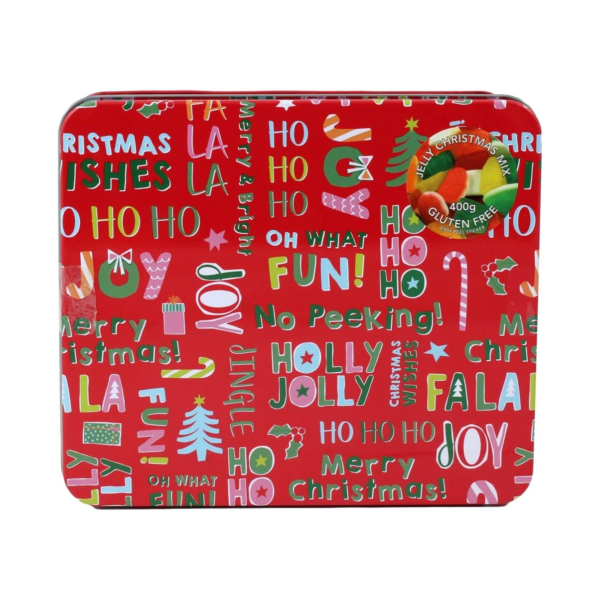 This holly jolly Christmas tin is just what you need for the Christmas party – perfect for sweet cravings and treats.