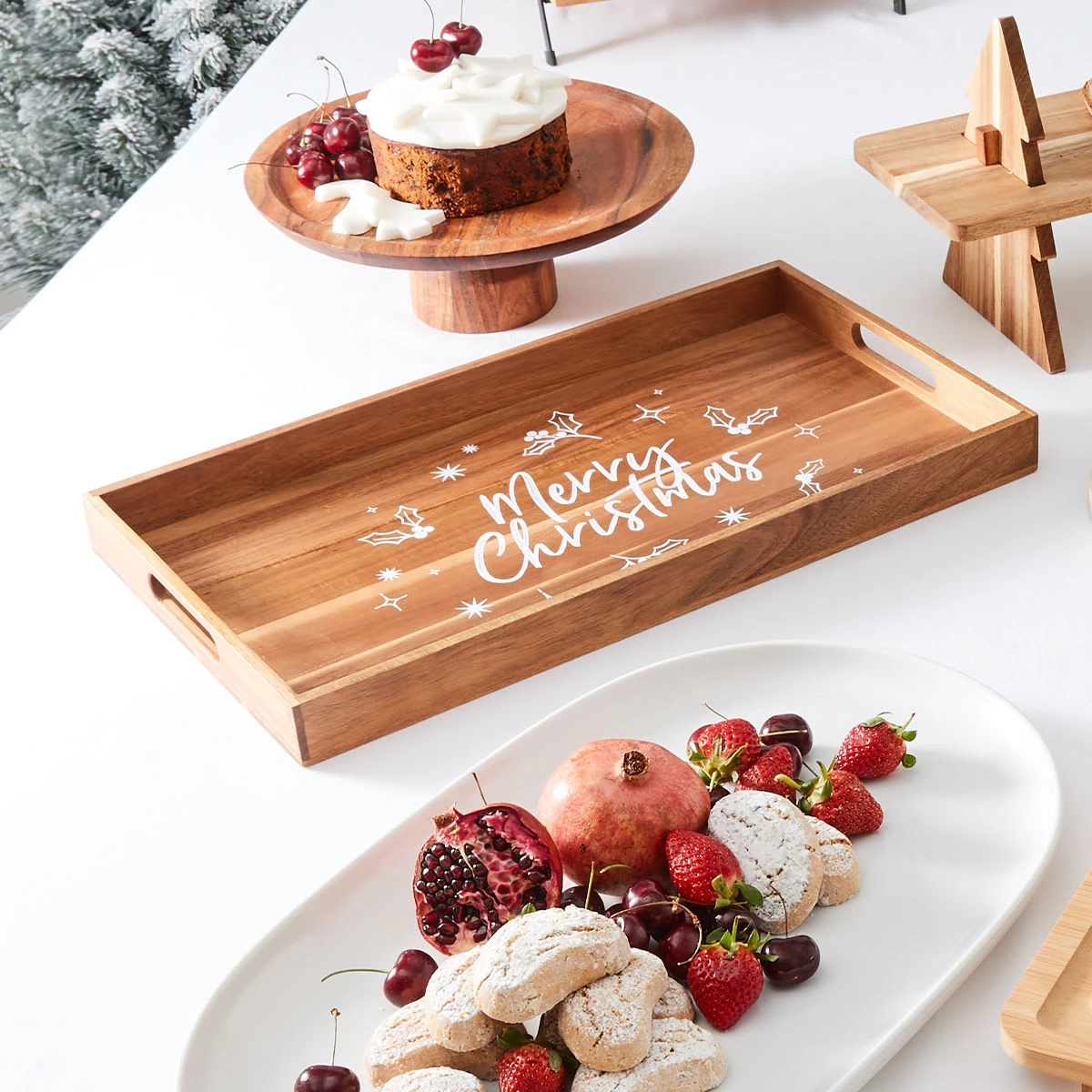 This festive season, serve delicious snacks or sweets to your guests in this stylish Merry Christmas wooden serving tray.
