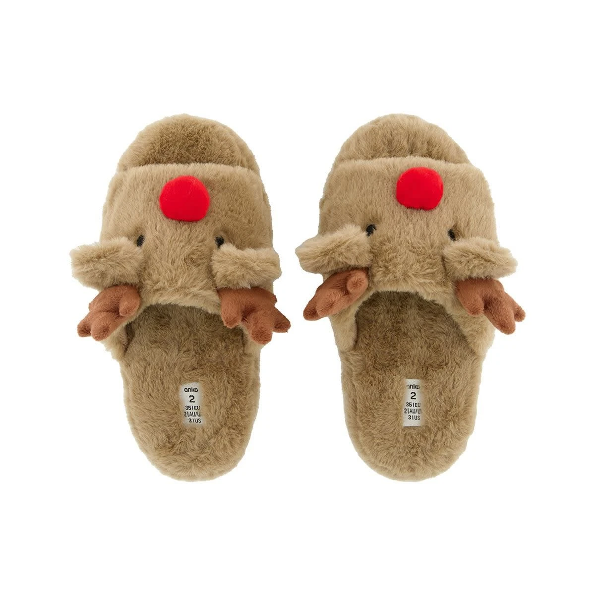 - Slip-on and 3D reindeer design