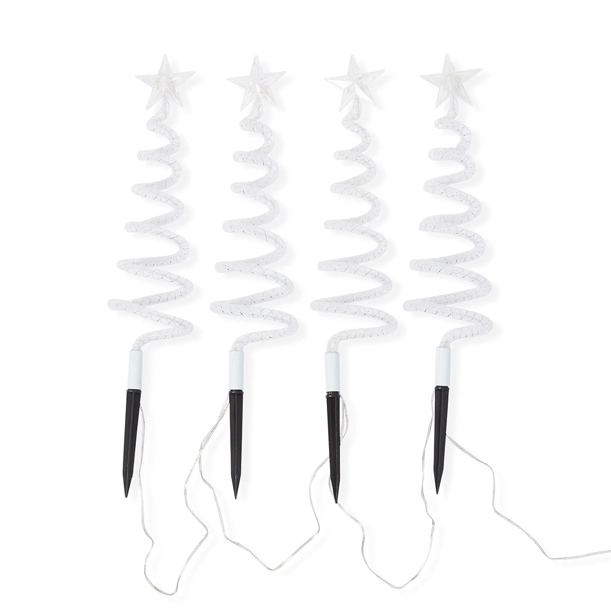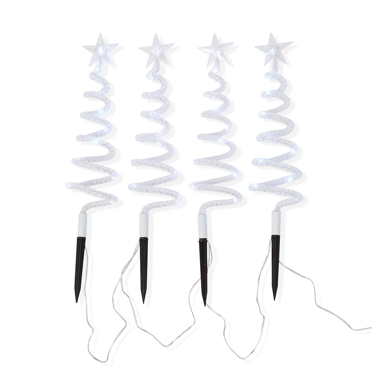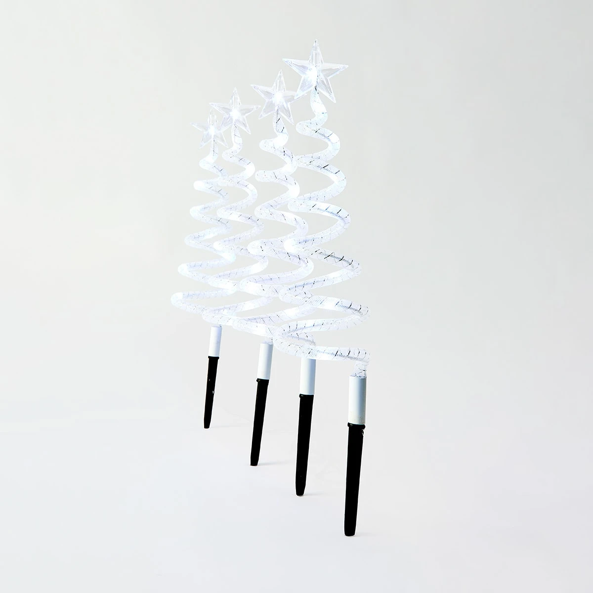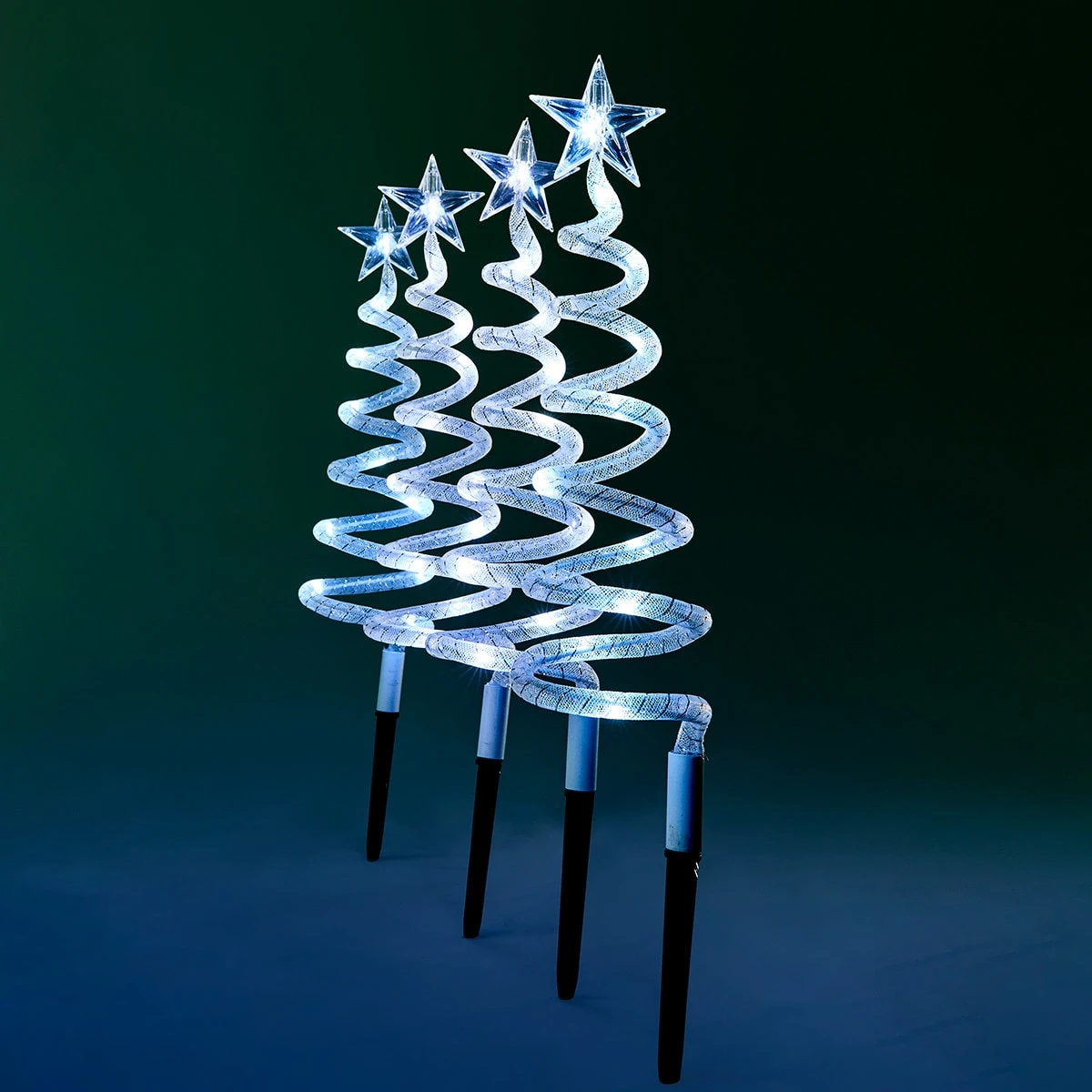 Spruce up your garden or backyard with these Solar Powered Christmas Swirl Tree Garden Stake Lights that are sure to brighten up your outdoor holiday decor.